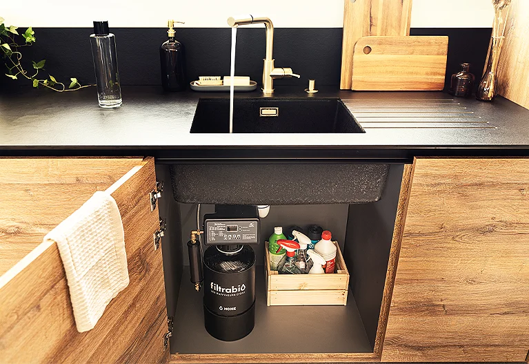 Le Filtrabio 100 est un système de filtration conçu pour être installé sous l’évier de la cuisine, permettant de purifier jusqu’à 150 000 litres d’eau sur une période de 4 ans sans intervention manuelle.